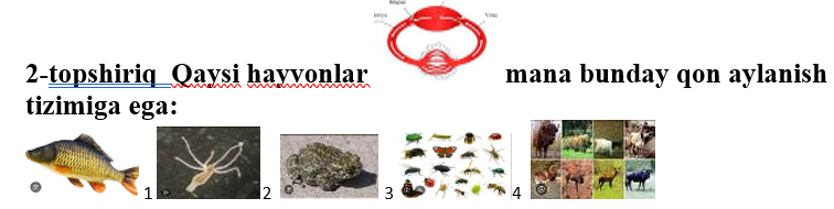 3-topshiriq:Quyidagi tasvir asosida baqaning qon aylanish sistemasini to’g’ri ta’riflang