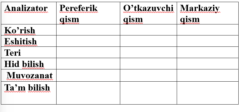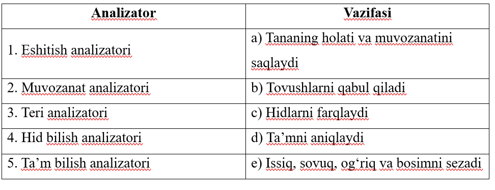 4-topshiriq Quyidagi analizatorlarni ularning vazifalari bilan moslashtiring