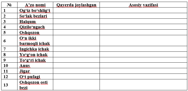 3-topshiriq Quyidagi jadvalni to’ldiring