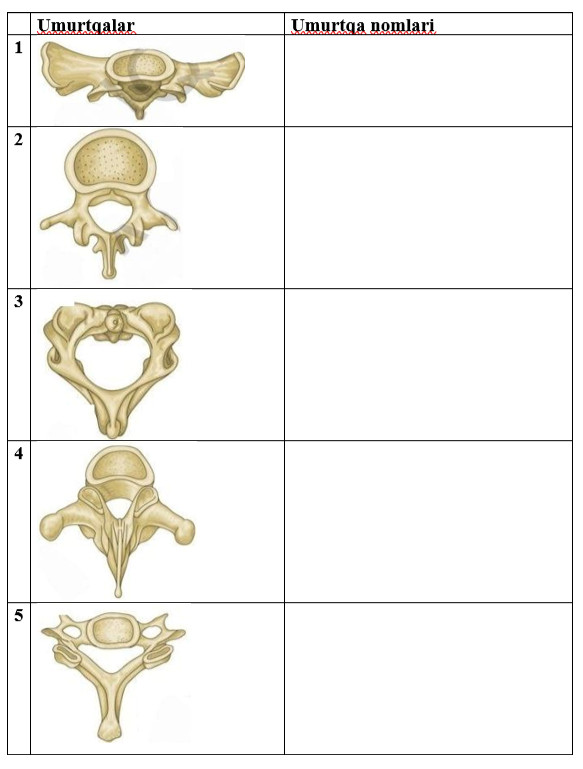 4-topshiriq. Quyida jadvalda berilgan umurtqa turlarini to’g’ri nomlang.